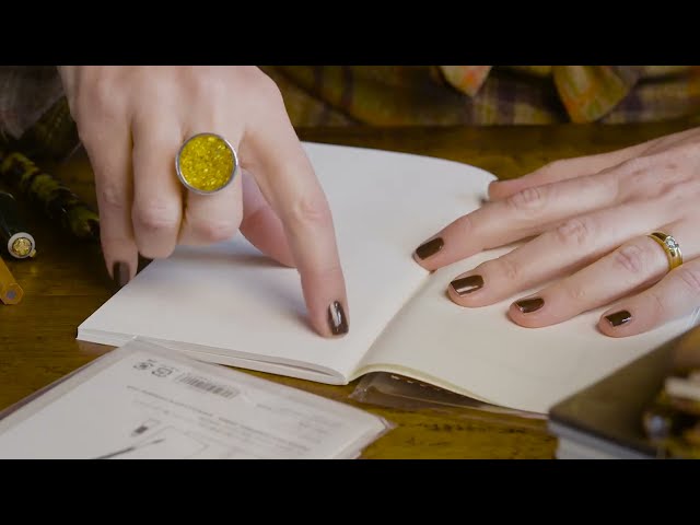 This video gives an overview of the regular size Traveler’s Journal. I open a brand new one and show you what’s inside, including the leather journal, a blank insert, a spare elastic band and a cloth cover.