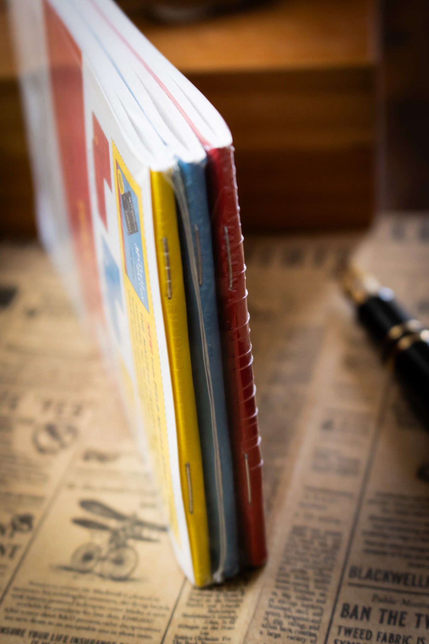 You’ll find bright red, yellow, and blue books in each 3-Pack. Covers are printed on sturdy Westrock Tango 12pt coated-one-side cover stock. The body of the book is 60# Domtar Cougar “Natural” (very popular in last winter‘s sold-out “Vintage” Edition), with an “Aged Newsprint” 3/16" graph grid.