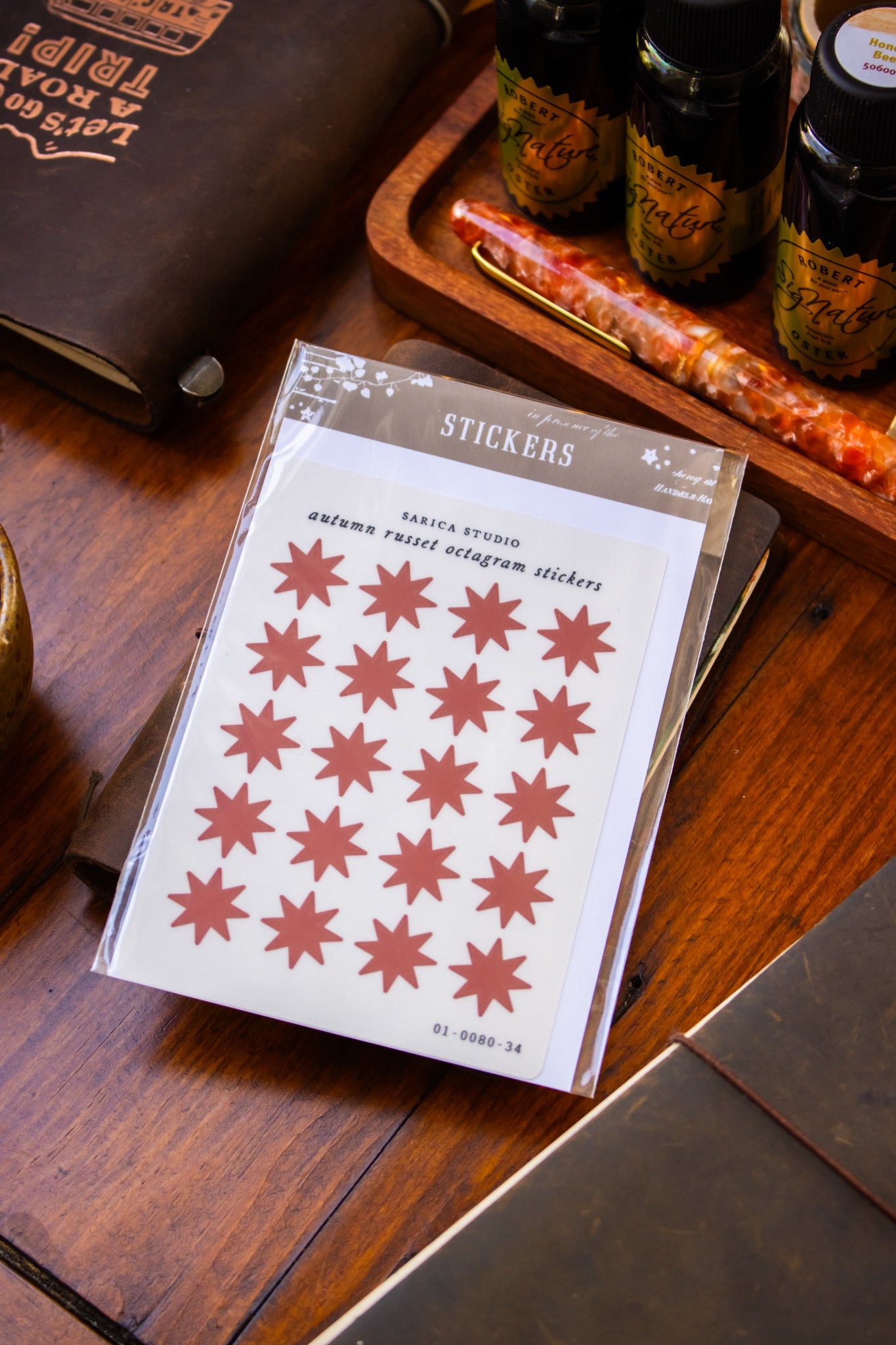 Autumn Russet Octagram Stickers