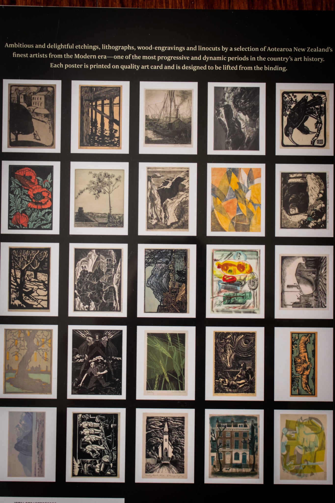 An exquisite book of 25 large pull-out posters of etchings, lithographs, wood-engravings and linocuts by some of New Zealand's finest artists from the Modern era.