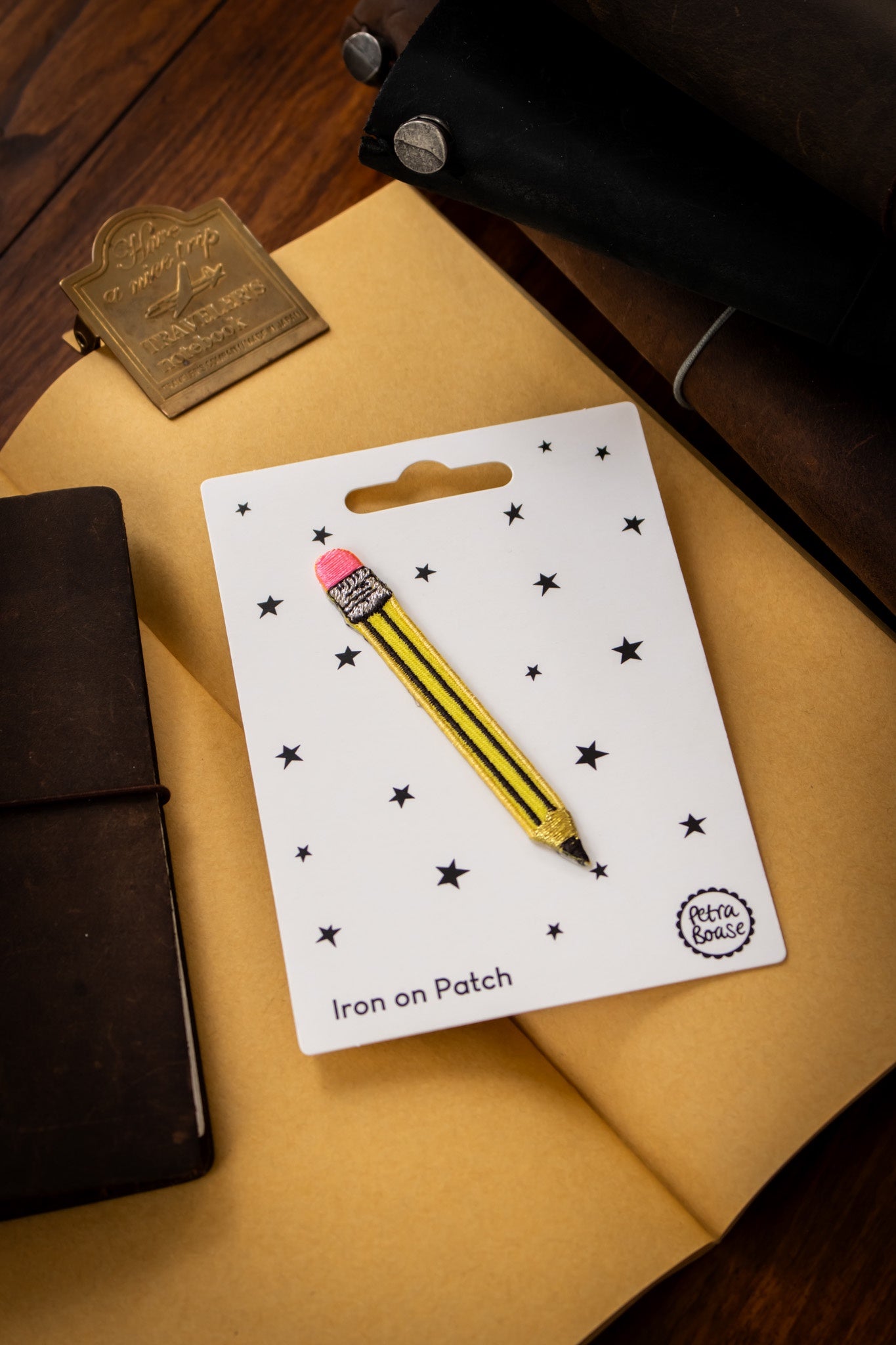 A cute retro pencil iron on patch. Perfect for stationery lovers.